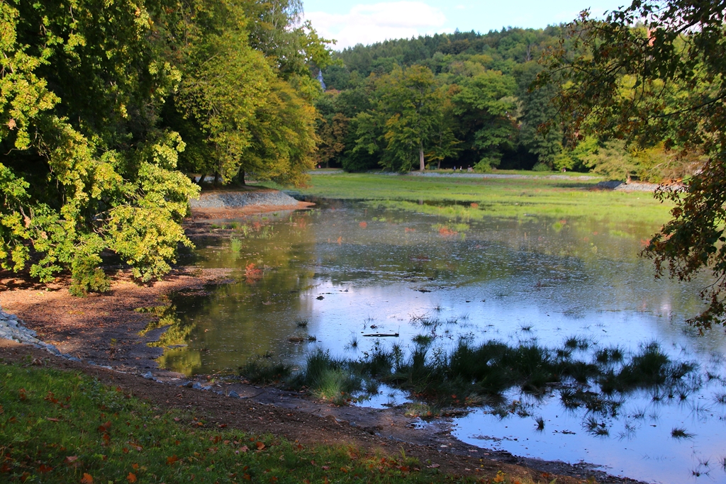 Nach dem Abschluss der Uferrekonstruktion hat nun die Wiederbespannung des Parksees aus dem Zulauf des Krümmebaches begonnen. Damit nähert sich das aufwändige Großvorhaben seinem Ende.