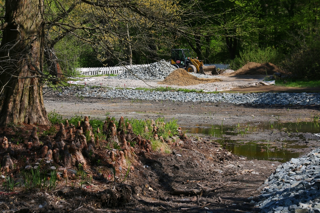 Die Greizer Firma Caspar-Bau arbeitet zügig an der zweiten Etappe der Sanierung des Parksees. Nach Abschluss der Entschlammung wird nun die marode Uferbefestigung am südlichen und östlichen Seeufer durch Steinschüttungen erneuert und stabilisiert. Laut Mitteilung der Stiftung Thüringer Schlösser und Gärten sei bereits ein Viertel geschafft, so dass man hofft, im Sommer den See wieder befüllen zu können.