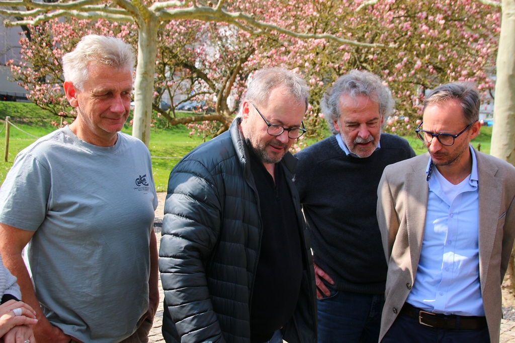 Von li.: Steinmetz Kahnt, Friedemann Sander, Gerd Deckinger (Freunde der Sammlungen des Sommerpalais), Dietger Hagner (Gartenreferent der Stiftung Thüringer Schlösser und Gärten) -