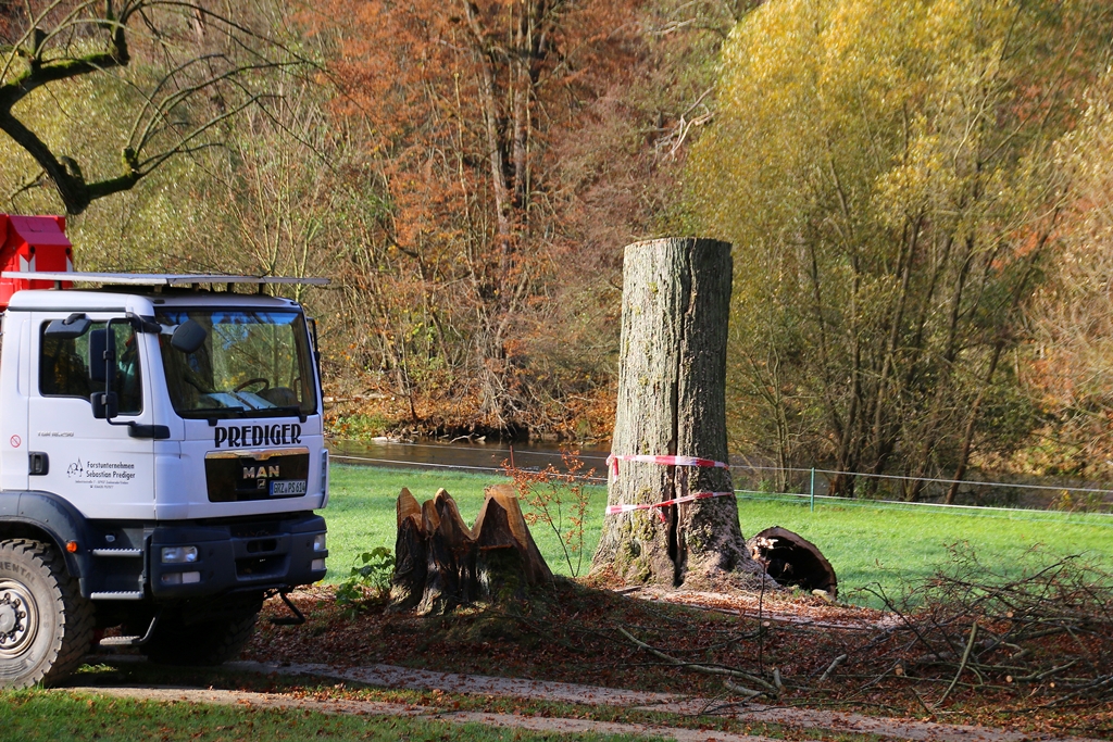 Die im Einzelfall bald 250 jährigen Veteranen der Seufzerallee müssen nicht nur in 30 Meter Höhe vom Totholz befreit werden, leider sind immer wieder Bäume nicht mehr zu halten und müssen gefällt werden. Ein Blick ins Innenleben zeigt, dass die Stämme hohl sind und nur noch von einem äußeren Ring gehalten werden. Die Lücken in der Allee werden damit größer, aber auch hier wird nachgepflanzt. Eine wichtige Entscheidung, auf diese Weise der Allee eine Zukunft zu geben.