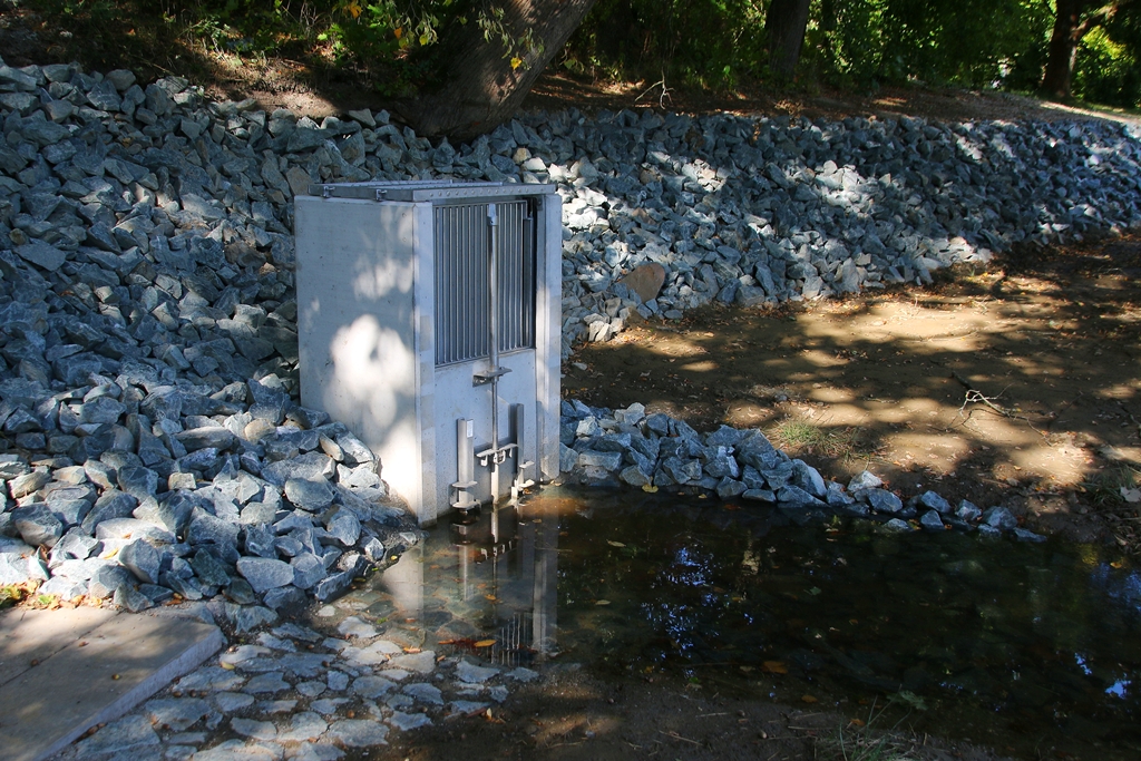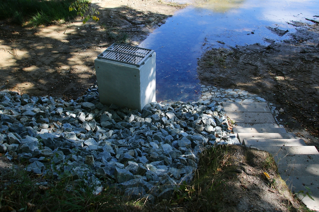 Weniger als hundert Meter Ufer warten noch auf eine neue Steinpackung, dann werden 1900 m Parkseeufer rekonstruiert sein. Bereits eingebaut sind ein neuer regelbarer Schacht am Abfisch-„Zapfen“ samt Treppenzugang. Eine zweite Ablaufeinrichtung steht am südöstlichen Entleerungsgraben zum Einbau bereit.