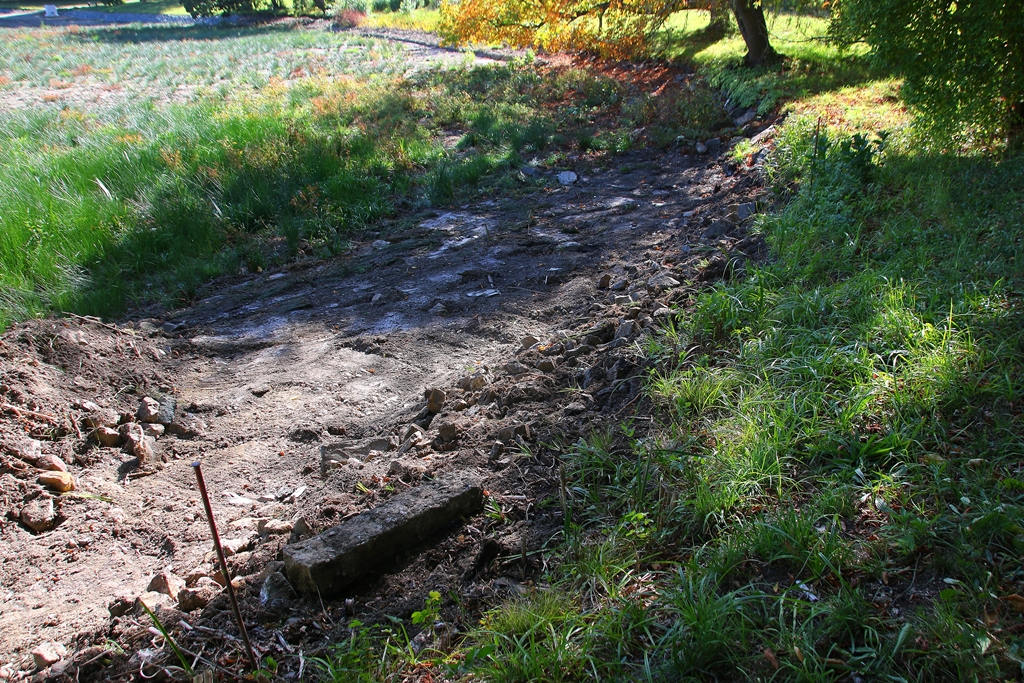 Was der Freundeskreis Greizer Park schon immer vermutet hat, bestätigte ein Fund am Westufer. Aus dem Schlamm wurde ein Baumschild geborgen, das zur nahen Gelben Rosskastanie gehörte. 2017 hatte der Freundeskreis 15 Bäume mit solchen Schildern versehen, mit Hilfe derer die Besucher per QR-Code weiterführende Informationen zum betreffenden Baum bzw. der Baumart aufrufen konnten. Zahlreiche Exemplare der Schilder verschwanden oder wurden beschädigt, so dass immer wieder kostspieliger Ersatz geschaffen werden musste. Eine Vermutung war, dass Übermütige die Schilder in den Parksee geworfen hatten.