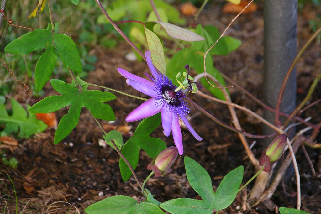 Vor der Sommerpalais-Südfront blüht die Passionsblume, eine in Südamerika beheimatete verholzende Kletterpflanze.