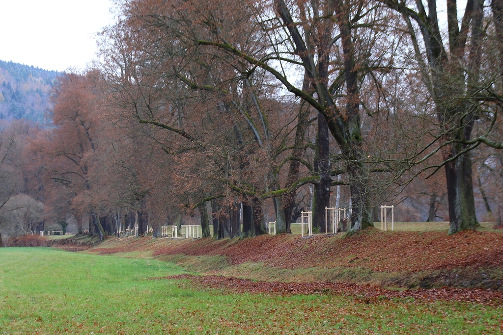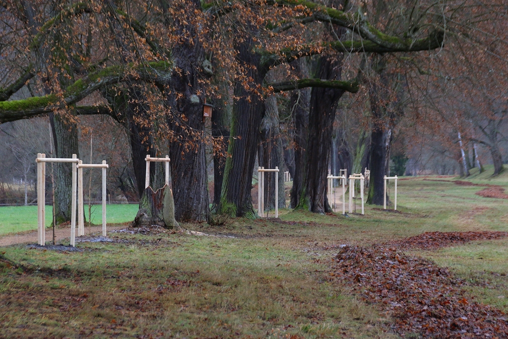 Bei der altehrwürdigen Seufzerallee, einer barocken Rarität mit ungewohntem gewundenem Verlauf, für die einzelne Exemplare schon um 1780 belegt sind, entschied man sich nun für eine Verjüngung. 13 der Winterlinden (von reichlich 70 Alt-Exemplaren) gingen in letzter Zeit verloren, nun wurden 43 Neupflanzungen an den inzwischen aufgelaufenen Leerstellen vorgenommen. Dabei handelt es sich um originale Reiser der Alleebäume, aufgepfopft auf robuste regionale Unterlagen. Sie sollen künftigen klimatischen Veränderungen besser gewachsen sein. Gepflanzt wurden sie zum Teil in alte Stümpfe, sofern dort durchgängiger Bodenkontakt gewährleistet ist.