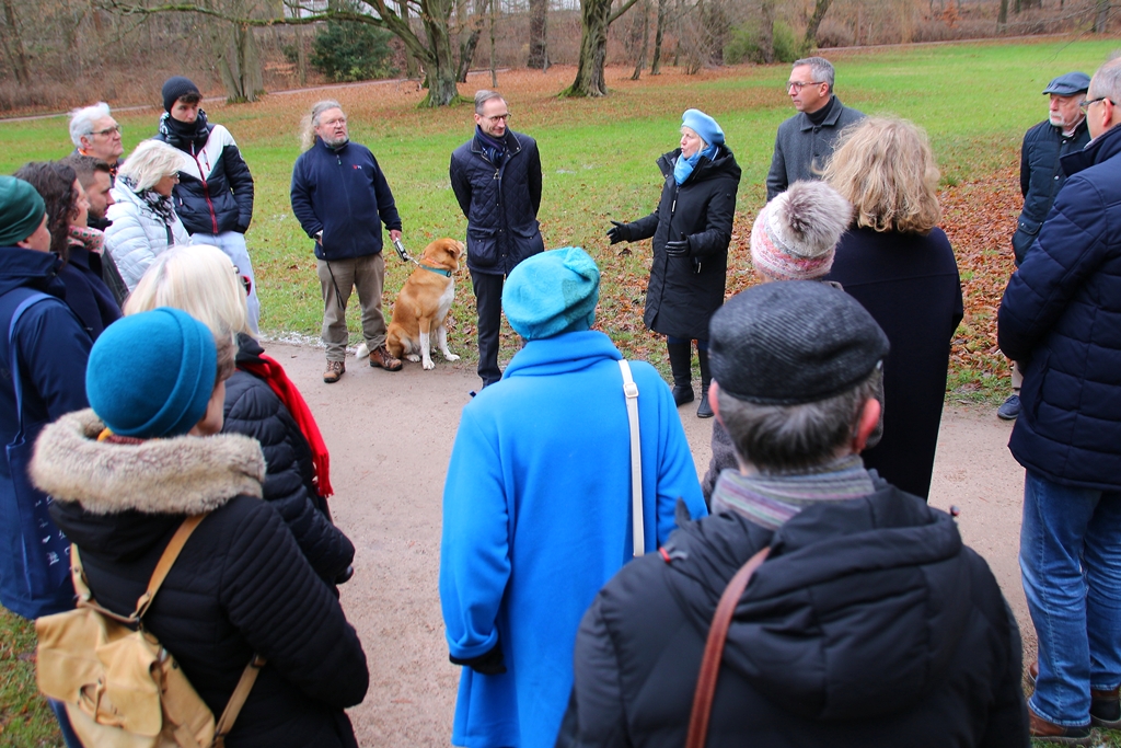 Dietger Hagner, Gartenreferent der Stiftung, erläuterte die abgeschlossenen Maßnahmen bei einem Rundgang. -