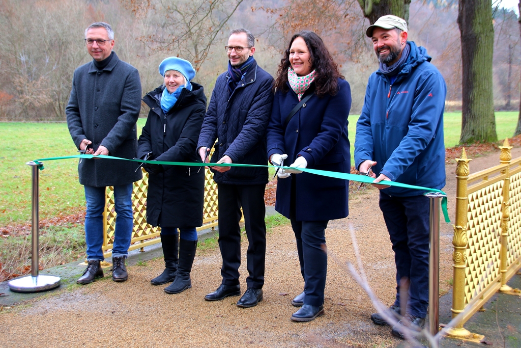 Die Revitalisierung des Parksees ist abgeschlossen (s. auch Pressemitteilung der Stiftung Thüringer Schlösser und Gärten vom 27.11.2025). Das Gesamtprojekt währte knapp zwei Jahre und kostete insgesamt 3,4 Mio. Euro. Die finalen Zahlen: Aus dem 8,1 ha großen Parksee wurden 15.935 t entwässerter Schlamm entfernt und deponiert. Damit vergrößerte sich seine Wassertiefe im Durchschnitt um 50 cm, gut für eine stabile Ökologie. Geborgen wurden auch ca. 700 kg Fische sowie 18.000 Teichmuscheln und in andere Gewässer umgesetzt. Zusammen mit der Restaurierung der Inselformen erhielten 2,1 km Uferlinie ihren historischen Verlauf und neue Natursteinpackungen. Auch 8.000 Euro private Spenden ermöglichten diesen Kraftakt. Sichtbarster Teil des Gesamtprojekts sind aber Neupflanzungen von insgesamt 76 Bäumen.