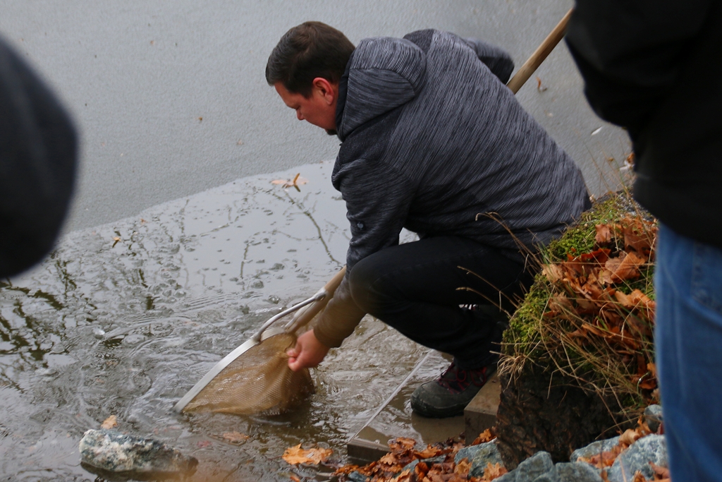 Schließlich: Für die geplante extensive Fischhege des Parksees wurden die ersten Rotfedern eingesetzt.