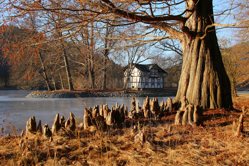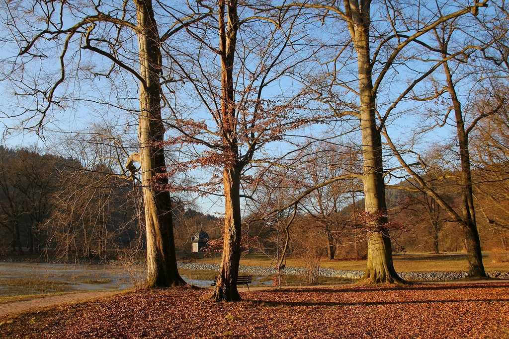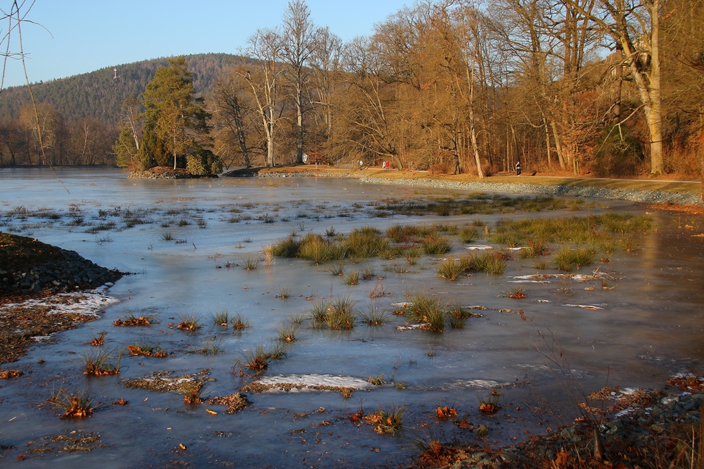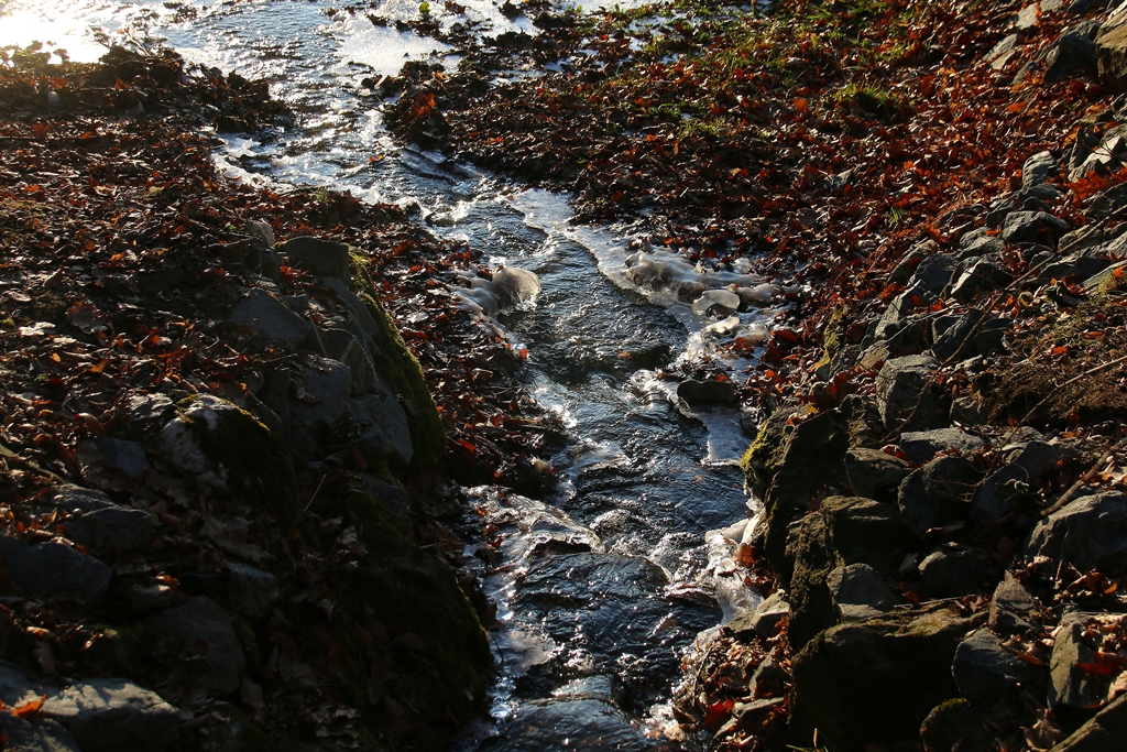 Endlich mal wieder winterliche Motive im Fürstlichen! Zugefroren ist der See, der Krümmebach gibt sein Bestes zum Erreichen des Soll-Wasserspiegels.