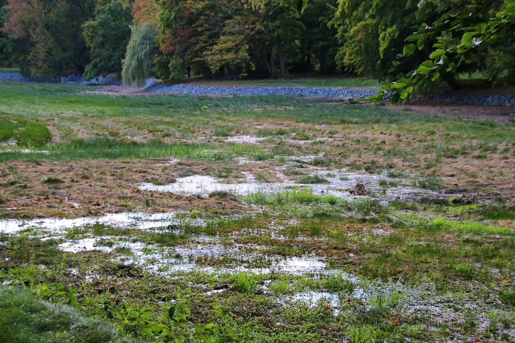 Nach dem Abschluss der Uferrekonstruktion hat nun die Wiederbespannung des Parksees aus dem Zulauf des Krümmebaches begonnen. Damit nähert sich das aufwändige Großvorhaben seinem Ende.