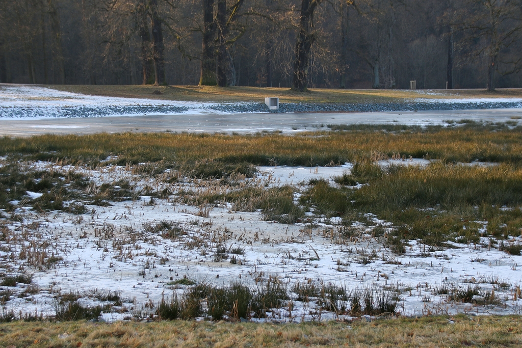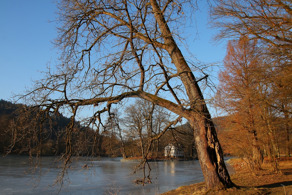 Endlich mal wieder winterliche Motive im Fürstlichen! Zugefroren ist der See, der Krümmebach gibt sein Bestes zum Erreichen des Soll-Wasserspiegels.